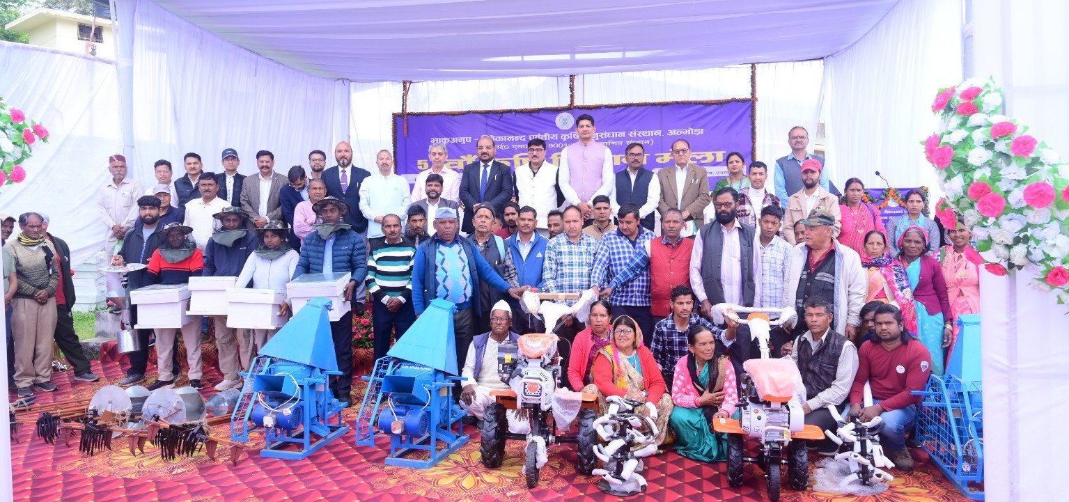 प्रगतिशील किसानों का सम्मान कार्यक्रम अत्यन्त हृदयस्पर्शी रहा, जहाँ उनकी कड़ी मेहनत और नवीन तकनीकों को अपनाने के उनके जज्बे को सराहा गया। सम्मानित किसानों ने अपनी प्रतिक्रिया साझा करते हुए बताया कि किस प्रकार संस्थान की तकनीकों ने उनकी आय और जीवन स्तर में सुधार किया है। मेले के दौरान प्रगतिशील किसान मंजू देवी, सरदार सिंह, चन्दन सिंह, संतोष कुमार, चम्पा देवी, लाल सिंह कठायत, हेमा देवी, खीम सिंह, श्याम सिंह, शारदा देवी एवं शालिनी देवी को पुरस्कृत किया गया। इस अवसर पर संस्थान में चल रही अनुसूचित जाति उपयोजना के अन्तर्गत अल्मोड़ा व बागेश्वर जनपद के विभिन्न गांवों से आए कृषकों को एग्रीकैनन, वी एल कुरमुला ट्रैप, वी एल मंडुआ थ्रैशर, वी एल पॉलीटनल एवं पावर वीडर तथा जनजातीय उपयोजना के अर्न्तगत पावर वीडर ग्राम धनपौ, लखवाड़ कालसी ब्लॉक, देहरादून को वितरण किया गया। मुख्य अतिथि एवं विशिष्ट अतिथियों द्वारा संस्थान की प्रजातियों नामतः वी एल त्रिपोषी, वी एल सुपोषिता, वी एल मधुरिमा, वी.एल. मडुवा 410 का लोकार्पण किया गया। इसके अतिरिक्त संस्थान के प्रकाशनों नामत: पर्वतीय कृषि दर्पण, पर्वतीय क्षेत्रों की महत्वपूर्ण फसलों की उन्नत किस्मों हेतु प्रबंधन कृषि पद्धतियाँ, उत्तराखंड की पारंपरिक फसल भट (काली सोयाबीन) के मूल्य वर्धित उत्पाद एवं पर्वतीय क्षेत्रों में दलहनी मटर की वैज्ञानिक खेती का विमोचन किया गया।